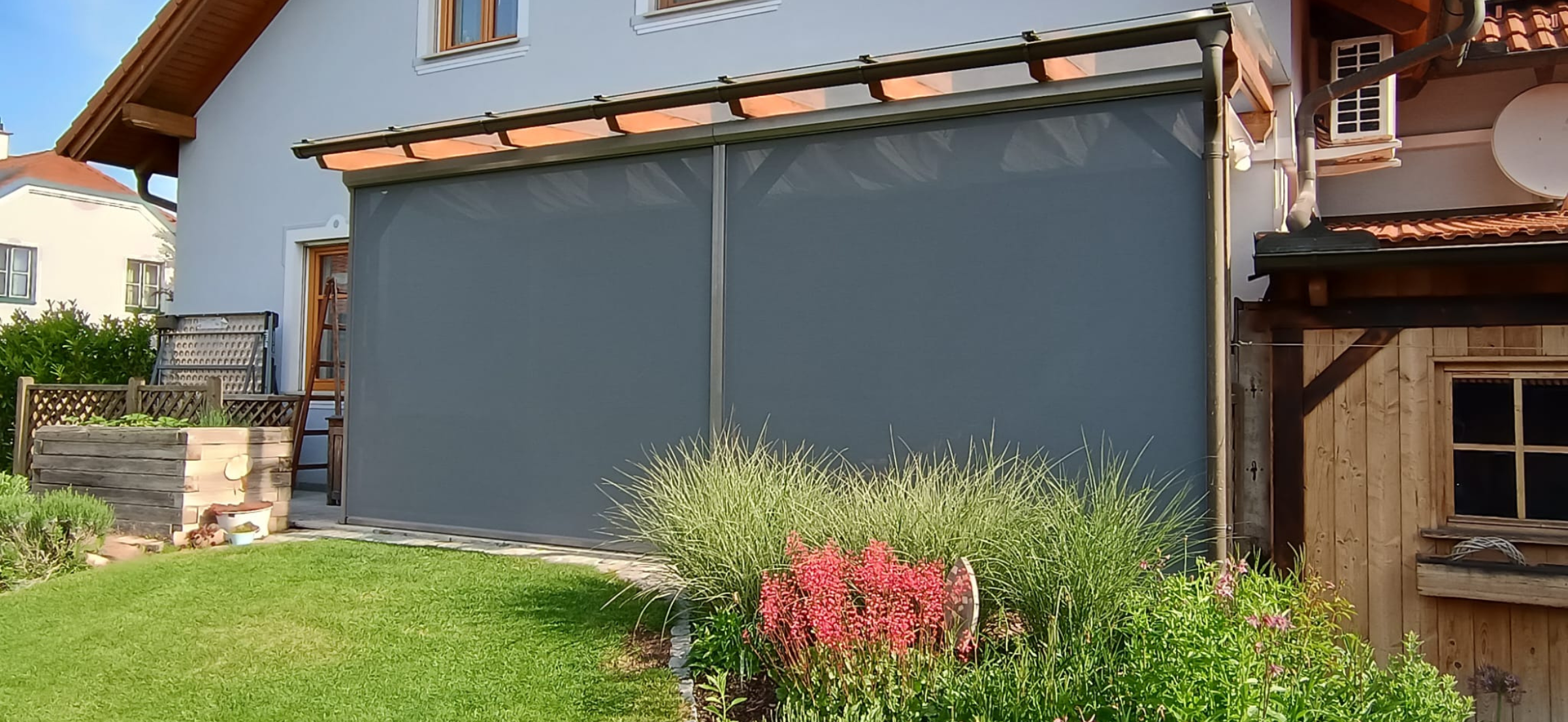 Erkundigen Sie sich nach Sicht- und Rollos für die Pergola